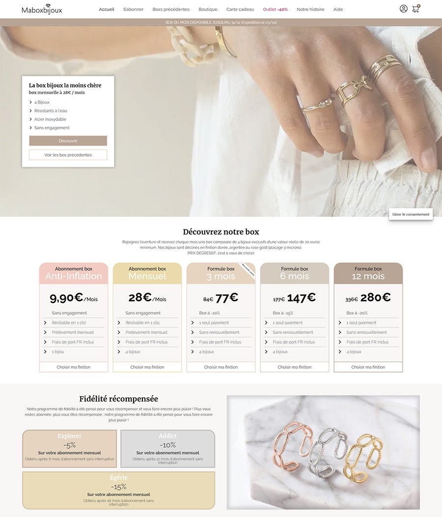 Nous sommes fiers de vous présenter la refonte du site e-commerce que nous avons réalisée pour Maboxbijoux, une entreprise innovante proposant un abonnement mensuel à une box de bijoux.